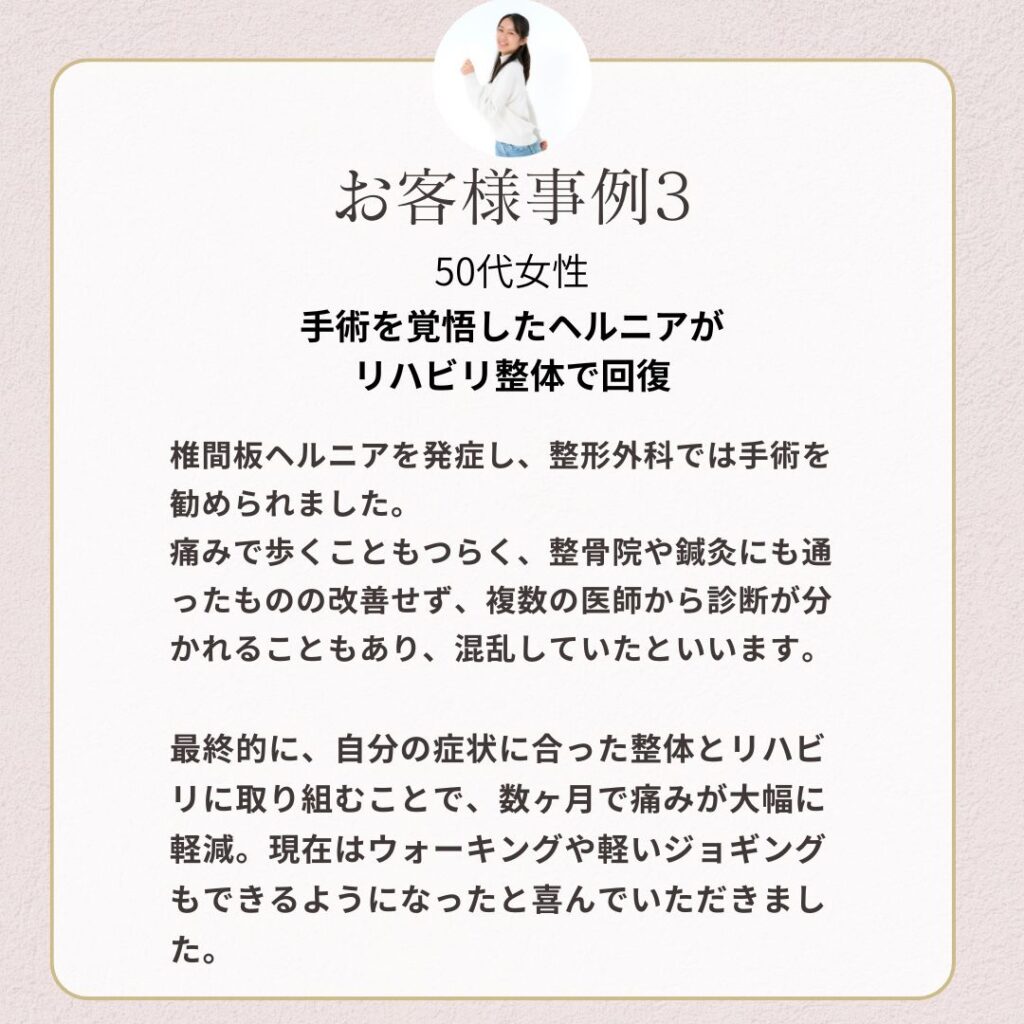 痛みを我慢し続けると、やりたいことまで制限されてしまいます。 でも、身体を整え直すことで、また前向きに過ごせる日常を取り戻しましょう。