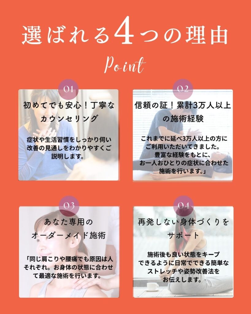 痛みの本当の原因を見極め、的確な施術で改善へと導きます。